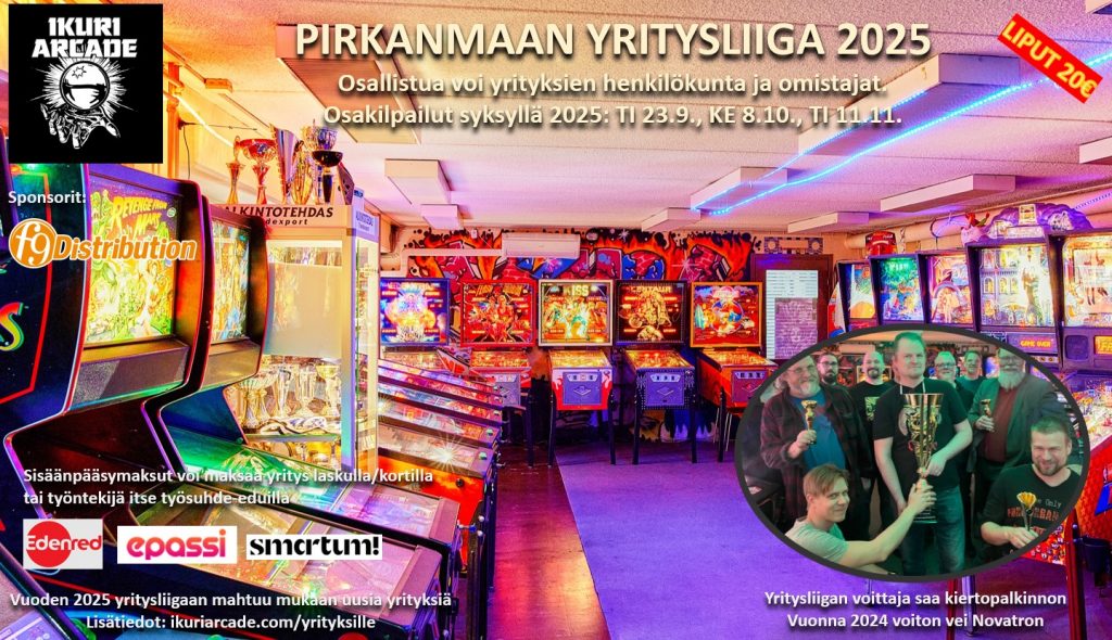 Ikuri Arcadella pelattiin vuoden 2020 aikana ensimmäinen yritysten välinen flipperiliiga, johon osallistui 14 yritystä. Vuoden 2020 alussa suunniteltiin pidettävän 8 osakilpailua, mutta korona sotki hieman suunnitelmia ja toisen osakilpailun jälkeen maaliskuussa tuli tauko ja pääsimme jatkamaan vasta elokuussa, joten vähensimme osakilpailujen määrää seitsemään. Joulukuussa 2020 piti olla sitten viimeinen osakilpailu ja finaali, mutta sekin jouduttiin siirtämään tammikuulle 2021.